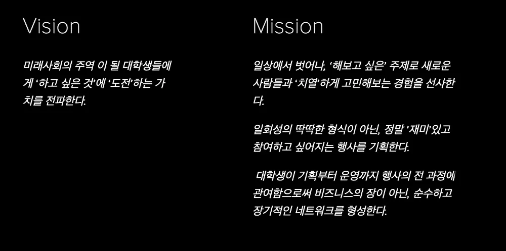 그래야 사람을 모으고, 이후 프로젝트의 Value와 Mission을 함께 설정하기 때문이다.