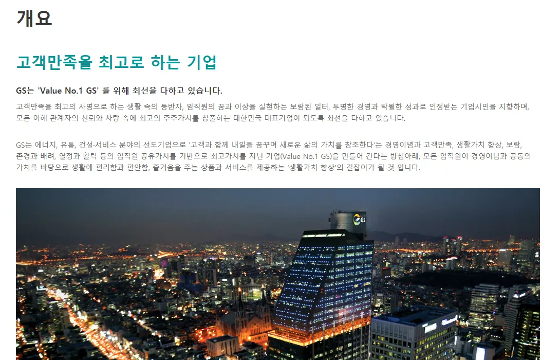 GS만 보더라도, Grow with Us라는 슬로건과 함께 " 고객만족을 최고로 하는 기업"을 모토로 하지만