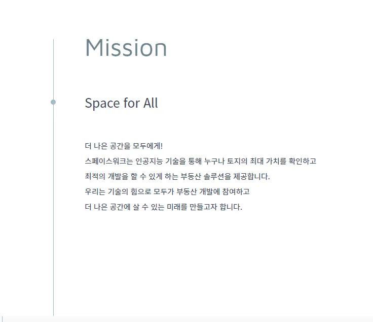 Mission: 인공지능 기술을 통해 누구나 토지의 최대 가치를 확인/개발할 수 있는 부동산 솔루션을 제공하는 것
