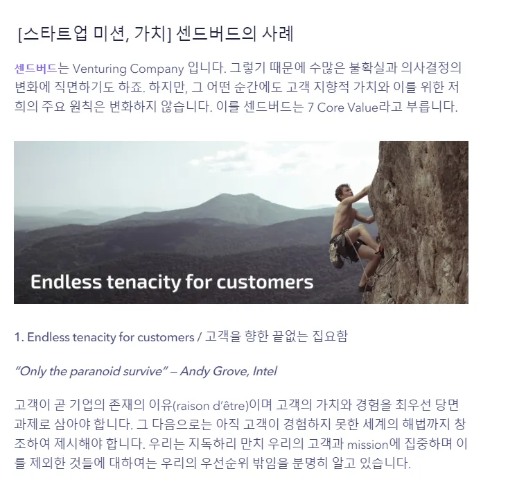 SendBird는 회사의 7가지 Value를 설정해놓았다.